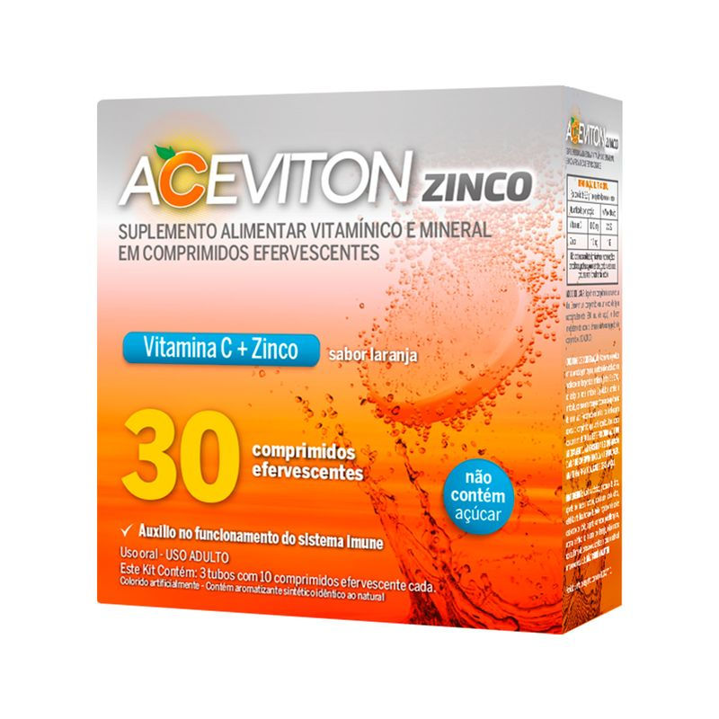 Aceviton Zinco 30 Comprimidos Efervescentes - Sabor Laranja